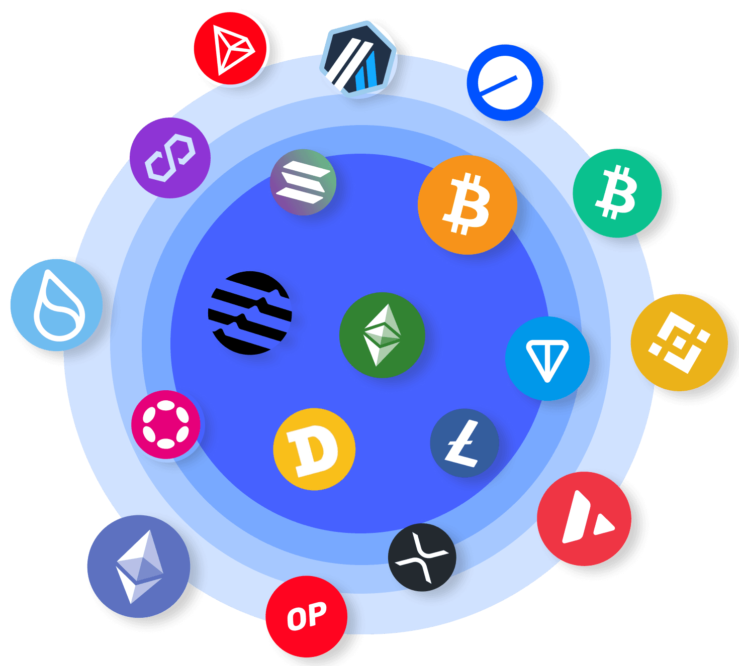 Aptos, Arbitrum, Avalanche C, Base, Bitcoin, Bitcoin Cash, BNB Smart Chain, Cardano, Dogecoin, Ethereum, Ethereum Classic, Litecoin, Optimism, Polkadot, Polygon, Solana, Sonic, SUI, Toncoin, Tron, XRP. If you need more, the EVM Custom Chain extension allows you to connect any EVM-compatible chain.